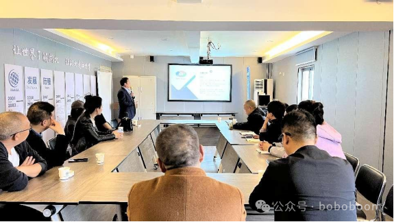 参观完公司的办公场所,我们又邀请大家来到公司的会议室,由荆门分公司的理事长胡长江为大家系统地讲解了折折朋比公司的发展经历、发展前景以及啵啵平台的各个板块的功能,让大家明白了我们为什么要做啵啵以及为什么对啵啵有这么大的信心,相信它能成功的底层逻辑。