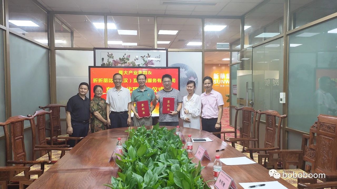 2023年8月31日,折折朋比(武汉)互联网服务有限公司管理人员出行东莞与量大产业集群洽谈合作。我司参会人员有总裁陈方、董事李明镜、副总裁曾卫平、市场一部总经理汪晶,对方参会人员有董事长侯刚、财务陶桃,广州药科大学马克思主义学院副院长张居永教授及其夫人龙老师共同参与签约仪式。